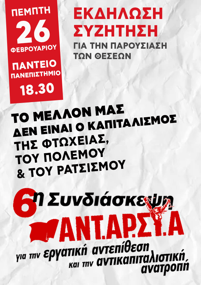 6η Συνδιάσκεψη ΑΝΤΑΡΣΥΑ: να μην αφήσουμε την ευκαιρία να πάει χαμένη – δεν θα έχουμε πολλές. [του Μάνου Σκούφογλου]