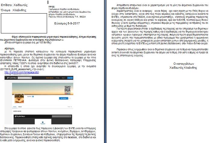 Την Τρίτη 12/9 θα συζητηθεί στο δημοτικό συμβούλιο μετά από αίτημα του συμπολίτη μας Κλεάνθη Χαϊδευτού το «Καταγγελία παρακρατικού μηχανισμού παρακολούθησης. Αίτημα σύγκλισης του Δημοτικού Συμβουλίου και ανάληψης πρωτοβουλιών».