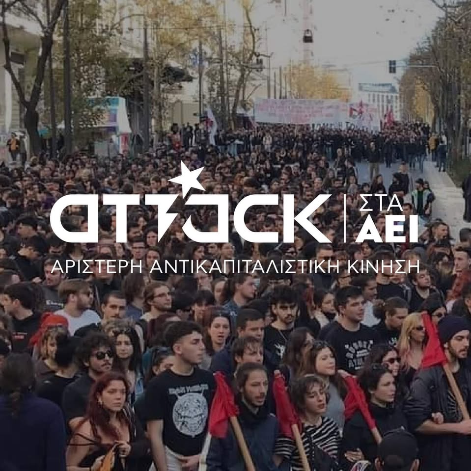 Η ΑΝΤΑΡΣΥΑ στηρίζει την Attack στις φοιτητικές εκλογές Στις 13 Μαΐου θα διεξαχθούν φέτος οι φοιτητικές εκλογές σε όλους τους φοιτητικούς συλλόγους πανελλαδικά. Τη φετινή ακαδημαϊκή χρονιά στις σχολές δόθηκαν μία σειρά από κρίσιμες μάχες απέναντι στην προσπάθεια της κυβέρνησης της ΝΔ να εφαρμόσει τους αντιδραστικούς νόμους που ψήφισε το προηγούμενο διάστημα, όπως οι διαγραφές φοιτητ(ρι)ών, τα «σχέδια ασφαλείας» στα ΑΕΙ και οι πειθαρχικές διώξεις, τα ιδιωτικά πανεπιστήμια, η πολεμική έρευνα στις σχολές. Η Attack στα ΑΕΙ πρωτοστάτησε πανελλαδικά στις μάχες αυτές. Ήταν η δύναμη που έμπρακτα απέδειξε ότι έχει σχέδιο και αγωνιστική πρόταση, ώστε το φοιτητικό κίνημα να γίνει ανατρεπτικό και πολιτικά επικίνδυνο. Επέμεινε στην πρότασή της για αγωνιστική κλιμάκωση και για ένα γενικό “black out” της εκπαίδευσης προκειμένου να μην εφαρμοστούν και να ανατραπούν όλα τα παραπάνω μέτρα. Η Attack έδωσε ανυποχώρητα τον αγώνα για μια κεντρική αντιπαράθεση του φοιτητικού κινήματος με την κυβέρνηση και το Υπουργείο Παιδείας, με Γενικές Συνελεύσεις, καταλήψεις, κινητοποιήσεις. Απέναντι στο βαθιά ταξικό μέτρο των διαγραφών, η Attack οργάνωσε πλήθος κινητοποιήσεων ενώ πρότεινε τη συμπόρευση των φοιτητικών συλλόγων με τους εργαζομένους στο πανεπιστήμιο και τους διοικητικούς υπαλλήλους μέσα από συχνούς συντονισμούς, προχωρώντας μάλιστα σε αποκλεισμούς των γραμματειών των σχολών προκειμένου να μην παραδοθούν οι κατάλογοι με τους διαγραφέντες φοιτητές! Παράλληλα, η Attack πάλεψε μαχητικά απέναντι στην προσπάθεια εφαρμογής του νόμου Ζαχαράκη για τα σχέδια ασφαλείας στα ΑΕΙ που έρχεται να αποστειρώσει το πανεπιστήμιο από κάθε κοινωνικοπολιτική δράση. Μετά την εκκένωση της κατάληψης του Φοιτητικού Συλλόγου Αρχιτεκτονικής, που αποφασίστηκε έπειτα από πρόταση της Attack, και τη σύλληψη 15 φοιτητ(ρι)ών, κατόρθωσε στη συνέχεια να μπλοκάρει στην πράξη τις πειθαρχικές διώξεις εις βάρος των συλληφθέντων φοιτητών μέσα από μαζικές κινητοποιήσεις, παγώνοντας ουσιαστικά την πρώτη εφαρμογή του αντιδραστικού νόμου. Τέλος, η Attack πρωτοστατεί στην αντιπολεμική πάλη στις σχολές, παλεύοντας για τη λήξη κάθε συνεργασίας των πανεπιστημίων με την πολεμική βιομηχανία, το ΝΑΤΟ και το κράτος-δολοφόνο του Ισραήλ, προτάσσοντας το αίτημα για γνώση κι έρευνα για τις κοινωνικές ανάγκες και όχι για τους πολέμους του κεφαλαίου. Από το μπλοκάρισμα της συνεργασίας του ΕΚΠΑ με την εταιρεία οπλικών συστημάτων Lockheed Martin μέχρι την μάχη ενάντια στην αλλαγή του κανονισμού λειτουργίας του ΕΜΠ που θα επιτρέπει την έρευνα για το ΝΑΤΟ, η Attack παίρνει σημαντικές πρωτοβουλίες για τη σύνδεση του φοιτητικού με το αντιπολεμικό κίνημα. Από την πιο «μικρή» μέχρι την πιο «μεγάλη» μάχη, η Attack είναι η συλλογικότητα της αντικαπιταλιστικής αριστεράς που παλεύει ανυποχώρητα απέναντι στη διάλυση της δημόσιας και δωρεάν παιδείας, στη μετατροπή των σχολών σε κερδοφόρα επιχειρηματικά πεδία, στην όξυνση των ταξικών φραγμών στην παιδεία και στο σύνολο της εκπαιδευτικής αναδιάρθρωσης. Με τα μάτια στραμμένα, λοιπόν, στις μάχες αυτές, προτάσσει την αναζωογόνηση του φοιτητικού κινήματος μέσα από γενικές συνελεύσεις, ώστε να μπορεί να απαντά με ανατρεπτικό τρόπο στην αστική επίθεση και στέκεται ενάντια σε εκφυλιστικές πρακτικές και λογικές ιδιοκτησιακής αντίληψης των φοιτητικών συλλόγων. Παλεύει για την συγκρότηση ενός