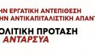 Η ΑΝΤΑΡΣΥΑ καταθέτει ενωτικό, προωθητικό κάλεσμα για την λαϊκή αντεπίθεση και την παρέμβαση της αντικαπιταλιστικής αριστεράς. Οφείλουμε να συμβάλλουμε σε μια διαφορετική προοπτική και σε ένα πολύμορφο μέτωπο, εργατικής αντικαπιταλιστικής κατεύθυνσης.